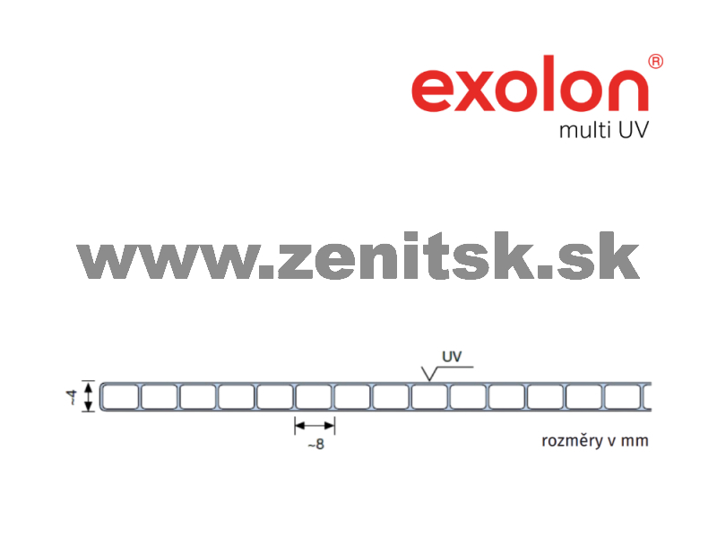 Exolon® 2/4 komôrkový polykarbonát je dvojstenná polykarbonátová doska s hrúbkou 4 mm. Doska je ľahká, odolná voči nárazom, ľahko sa inštaluje, umožňuje ohýbanie za studena. Jednostranná UV stabilizácia umožňuje inštaláciu aj vo vonkajšom prostredí. Pre strešné konštrukcie vystavené zaťaženiu vetrom a snehom v prípade plochých aj oblúkových krytín sa odporúča použitie hrubších dosiek.