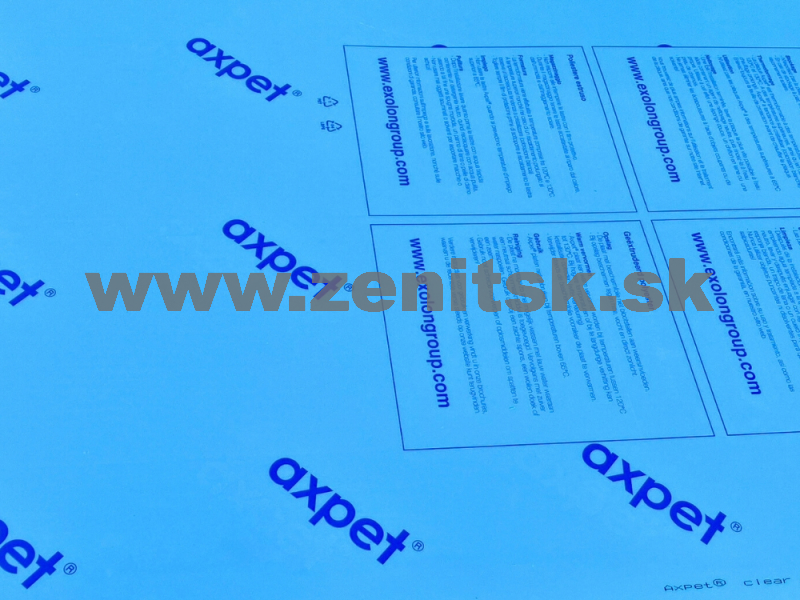 Axpet® označuje termoplastickú polyesterovú dosku. Tento materiál je ideálny pre reklamné výrobky a prezentácie produktov – na skladacie displeje, ochrany plagátov, cenovky, puzdrá, podávače a zásobníky, alebo napr. aj pre potravinárske a farmaceutické výrobky. Axpet® vyniká predovšetkým svojou schopnosťou byť ohýbaný za studena, dobrou chemickou odolnosťou a vysokou pružnosťou. Axpet® sa používa všade tam, kde sú kladené vysoké nároky na priateľskosť k životnému prostrediu a kde môžu byť využité všetky výhody vysoko kvalitnej polyesterovej dosky.