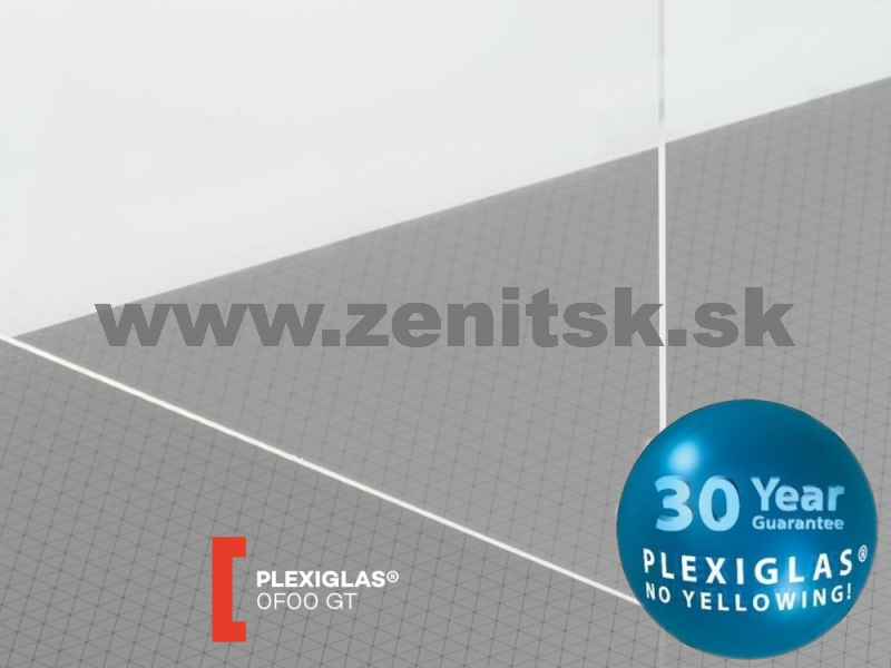 Veľmi kvalitný druh plexiskla. Materiál je UV-nepriepustný, vysoko odolný proti UV žiareniu a poveternostným vplyvom, poskytujeme 30-ročnú záruku na nežltnutie. Obe povrchové strany týchto dosiek z plexiskla sú hladké a vysoko lesklé, dodávané s ochrannou fóliou. Široké použitie v reklame, stavebníctve a priemysle. Výroba liatím znamená, že materiál sa naleje medzi dve sklenené dosky a v peci postupne chladne. Týmto získava menšie vnútorné napätie, avšak väčšiu hrúbkovú toleranciu než extrudované plexi Plexiglas XT.