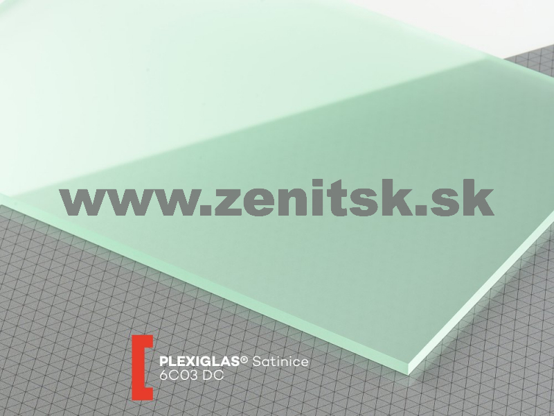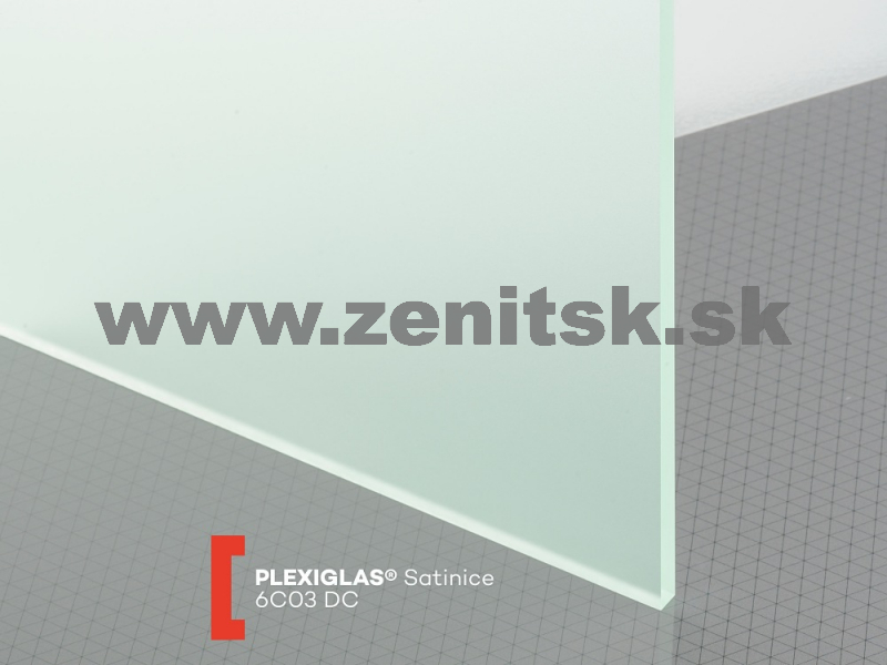Plexisklo dosky s pieskovaným povrchom Plexiglas SATINICE sa dodávajú v 3 variantoch: SC, DC a DF. Označenie SC znamená, že dosky majú pieskovaný povrch z jednej strany, druhá strana je lesklá; označenie DC znamená, že dosky majú z oboch strán povrch s pieskovanou štruktúrou; označenie DF znamená, že dosky sú určené na nasvietenie s optimálnym rozptylom svetla. Materiál je UV-nepriepustný, vysoko odolný proti UV žiareniu a poveternostným vplyvom, poskytujeme 10-ročnú záruku na stálosť fyzikálnych vlastností. Obe povrchové strany týchto dosiek z plexiskla sú kryté ochrannou fóliou. Široké použitie v reklame, nábytkárstve, dizajne... K tomuto produktu dodávame špeciálne lepidlá, ktoré po zaschnutí nie sú lesklé, ale vytvárajú dojem pieskovania.
