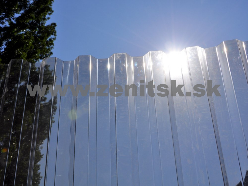 Polykarbonátové trapézové dosky sú ideálnym materiálom pre zasklenie rôznych prístreškov, pergol, zvislých stien, státí pre autá a pod. Vysoká priehľadnosť a veľmi dobrý prenos svetla sú len nepatrnou časťou výhod, ktoré tento materiál ponúka. Extrémne vysoká odolnosť proti nárazu zaručuje, že dosky sú prakticky nerozbitné a tým veľmi bezpečné. Jednostranný UV filter zabraňuje starnutiu a poškodeniu dosky slnečným žiarením. Výborné vlastnosti polykarbonátu zaručujú zachovanie rovnakých mechanických a optických vlastností. Záruka 10 rokov podľa podmienok výrobcu.