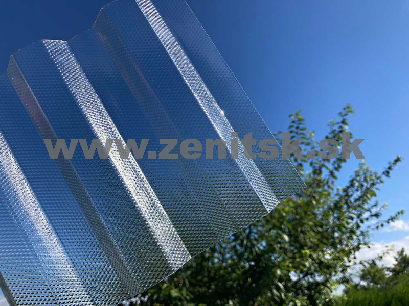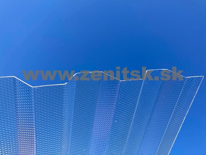 Trapézová polykarbonátová doska 76/18 čirá štruktúra mikroprizma Più 0,9mm , 1040 mm , 2000 mm