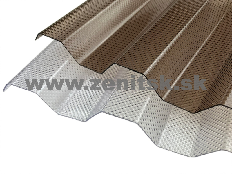 Trapézová polykarbonátová doska 76/18 čirá štruktúra mikroprizma Più 0,9mm