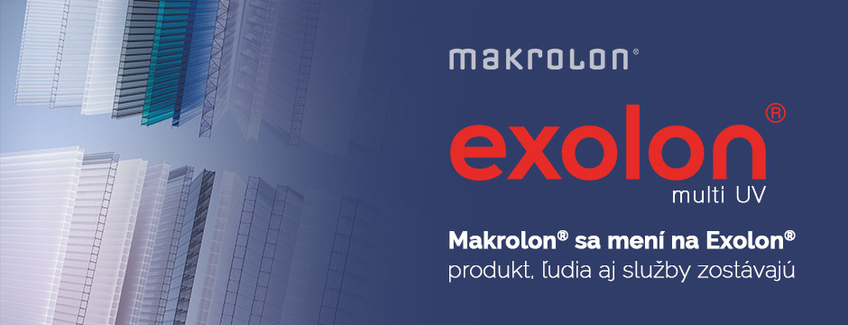 Ako oficiálny zástupca pre SR a ČR vás týmto informujeme, že výrobca polykarbonátových dosiek Makrolon® ukončuje používanie tejto obchodnej značky a prechádza na obchodnú značku Exolon®. Pri komôrkových doskách nastáva premenovanie 1. 5. 2021, pri plných doskách 1. 6. 2021.