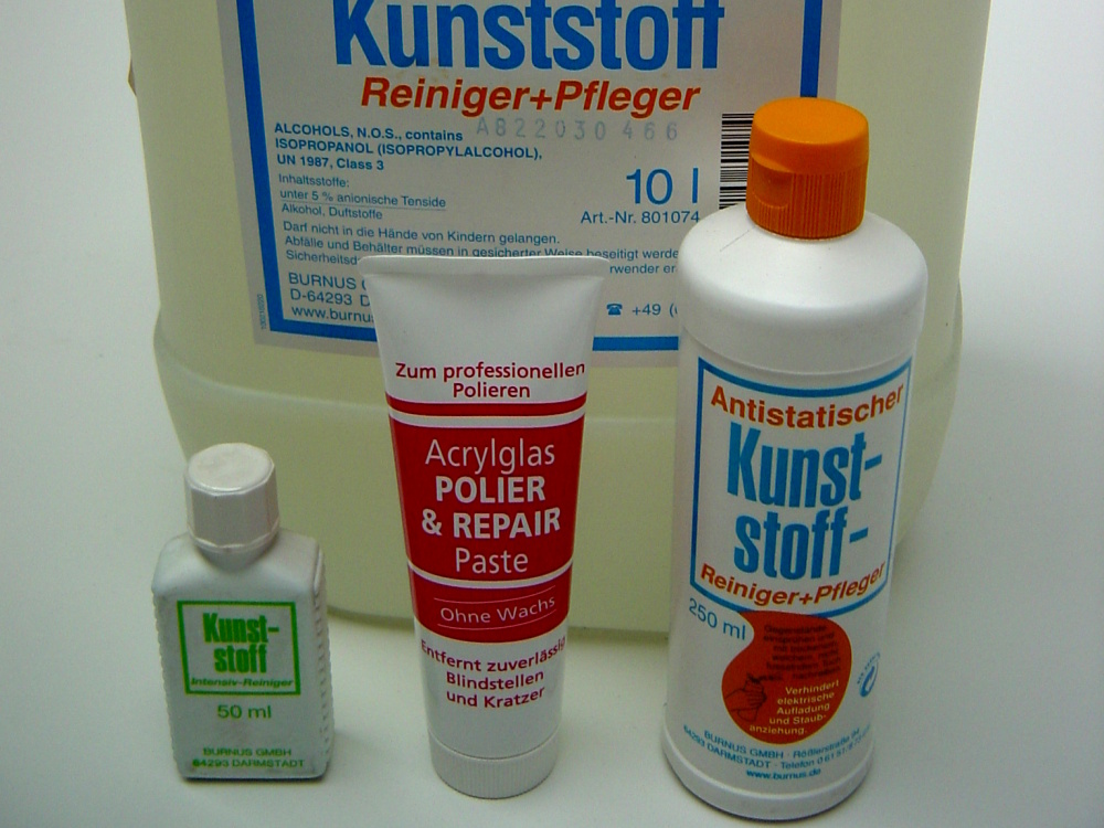 Nepoužívajte na čistenie tenkostenných trubiek Plexiglas a komôrkových dosiek Plexiglas Alltop, na hrany dosiek pálených laserom a na dosky s napätím, napr. ohnuté za studena.
