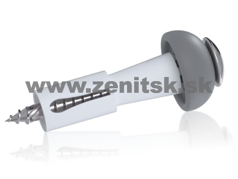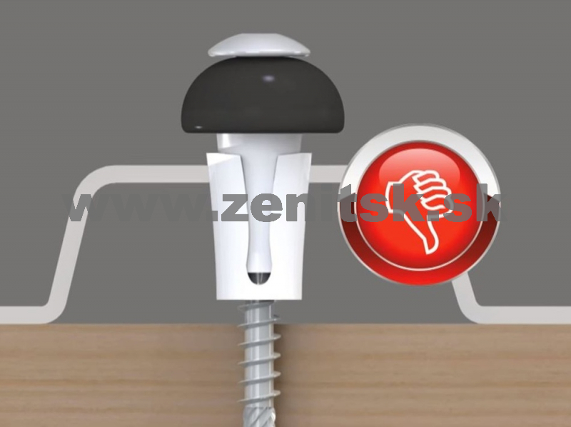 Pri montáži je potrebné dbať na čistotu otvoru pre "hmoždinku". Dbajte na to, aby celá plastová časť prešla doskou, nad doskou má zostať len gumový klobúčik.