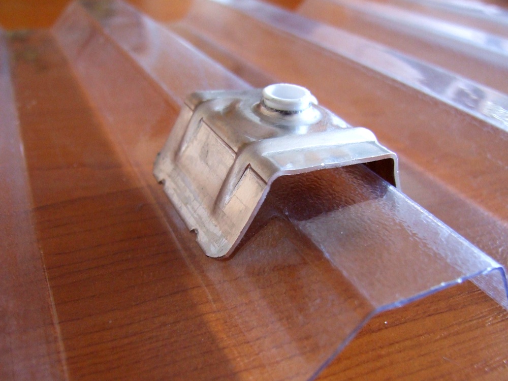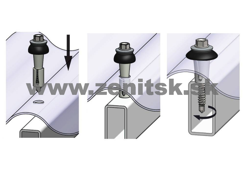 3. Pri skrutkovaní do spodnej konštrukcie musí byť plastový valček pod trapézovou doskou (aby sa mohol roztiahnuť).