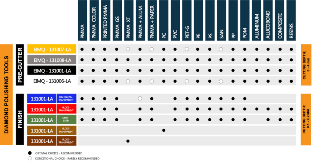 Pokiaľ ide o leštenie lesklých materiálov, ako je PMMA, hliník, PC, akryl, PETG alebo iné mäkké materiály, je použitie správnych diamantových rezných nástrojov zásadné pre dosiahnutie hladkých a priehľadných kusov. Kvalita nástrojov je rozhodujúca pre kvalitu hotových obrobkov. Preto sa odporúča používať iba originálne náradie od výrobcu.