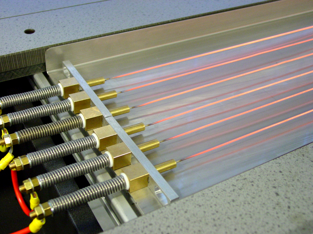 Pomocou viacerých profilov ohrevu drôtu môžete vytvoriť širšiu vykurovaciu zónu. Používa sa na ohýbanie materiálov s veľkým polomerom alebo hrubších materiálov. Na ohýbanie materiálov o maximálnej hrúbke je potrebný obojstranný ohrev s horným a spodným vykurovacím profilom.