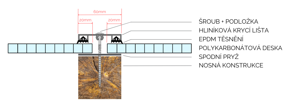 Prítlačný terčík slúži na montáž komôrkových polykarbonátových dosiek k zvislým nosníkom tam, kde nie je spoj dosiek. Priemer terčíka je 50 mm, aby PC doska bola ku konštrukcii pritisnutá dostatočnou plochou a v prípade podfúknutia vetrom nedošlo k utrhnutiu dosky. Dodávame v bielej, tmavo hnedej a čírej farbe. Na dotesnenie je potrebné použiť tesniacu EPDM podložku, ktorá nie je súčasťou a je nutné ju doobjednať zvlášť. Jedná sa o univerzálny terčík bez spodnej nožičky - odporúčané pre hrúbku PC dosiek 4-8 mm. Určené pre šróby do priemeru 6,5 mm s čočkovou / polkruhovou hlavou.