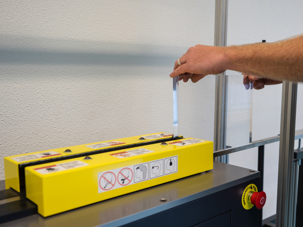 Stroj je vybavený núdzovým zastavením a rôznymi ďalšími ochrannými krytmi, vstupnými a výstupnými vodičmi a nastaviteľnými nožičkami. Pre ideálnu pracovnú výšku a stabilné vedenie veľkých plastových dosiek sú k dispozícii aj nosné rámy.