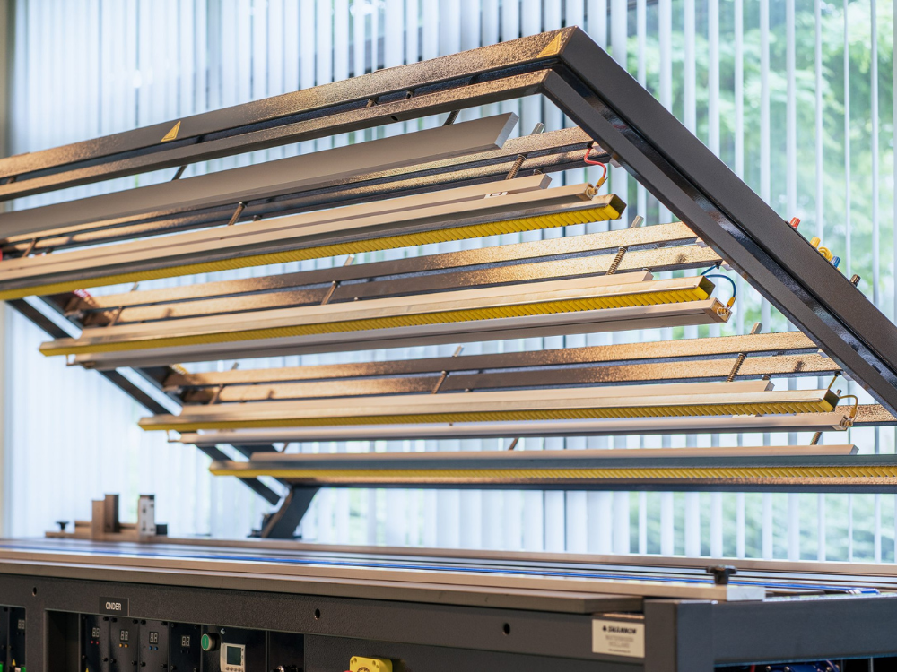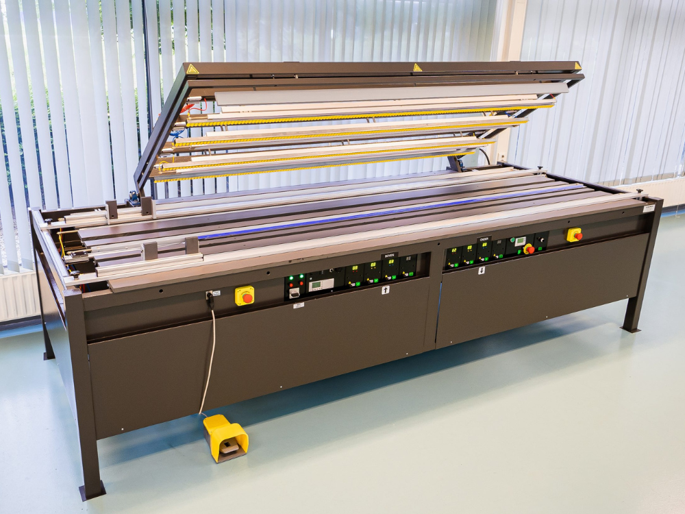 Veľmi produktívna automatická ohýbačka plastových dosiek s pracovnou dĺžkou 3000 mm. Dodáva sa s časovo riadeným horným rámom, automatickým podávaním a systémom dopravníkového pásu. Až osem teplotných regulátorov pre štyri horné a štyri spodné vykurovacie okruhy, štyri prítlačné prvky.